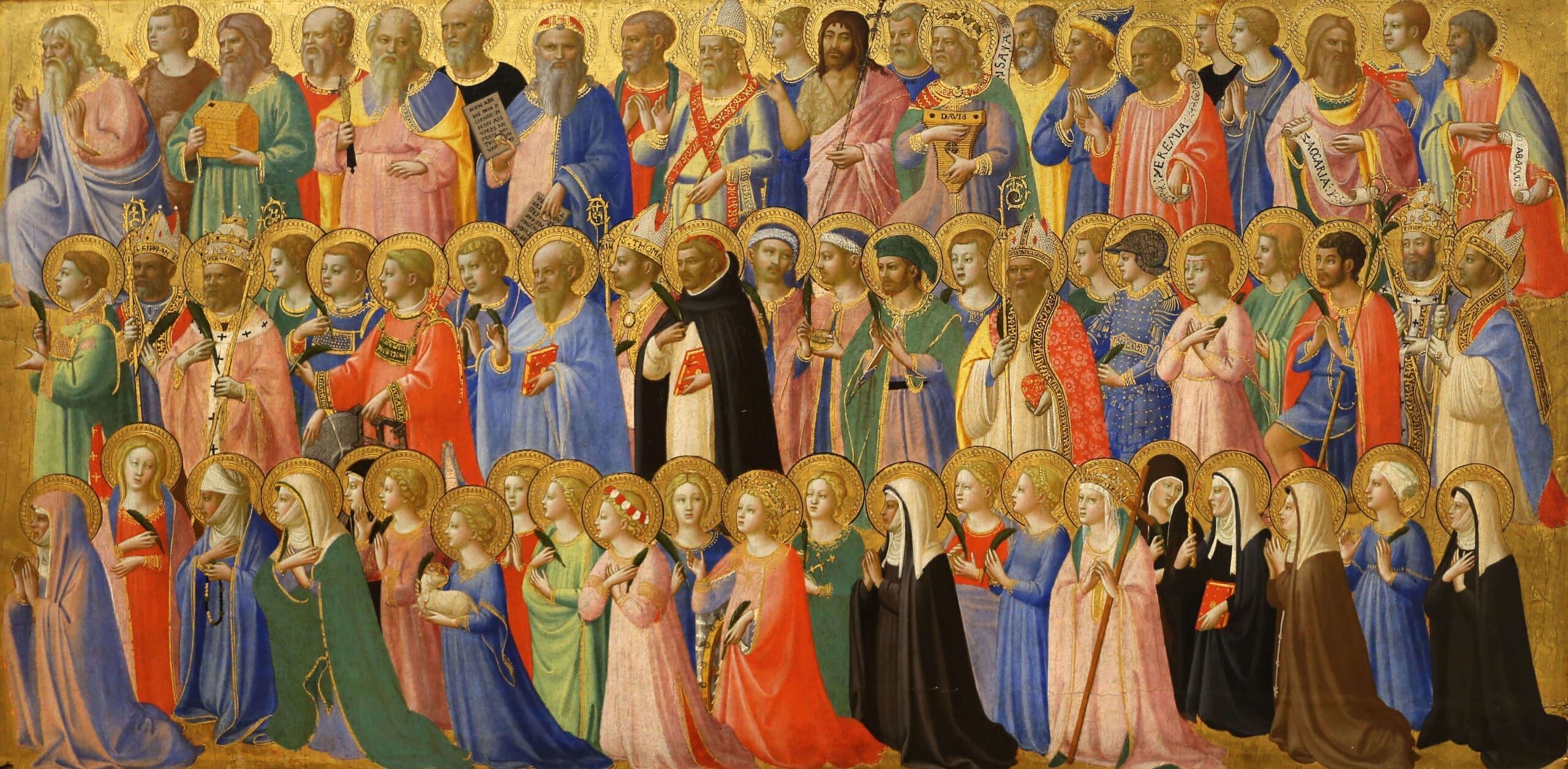 The feast of All Saints, or All Hallows, has been kept on November 1st since Pope Gregory IV extended the observance to the whole church in the ninth century. This date marks the anniversary of Pope St. Gregory III’s eighth century dedication of a chapel in St. Peter’s Basilica that honored all the saints. Feasts in honor of all saints or all martyrs were already celebrated on various days in earlier centuries. Pope St. Boniface IV had consecrated the famed Pantheon in Rome to Our Lady and all the Martyrs on May 13th in the year of Our Lord 609, though not all scholars are certain that this was the original feast of All Saints. In any case, the feast of All Saints on November 1st has for centuries been observed as one of the great holy days of the entire calendar, honored with a vigil since its establishment, and granted an octave as well in the fifteenth century. This is the second day of Hallowtide, the triduum that begins on the vigil, All Hallows Eve, and concludes with the commemoration of the Holy Souls on November 2nd. The Roman Martyrology for each day of the year lists many named saints, but there are many more named saints who are not mentioned, and countless saints whose names are known only in heaven. This day honors them all.