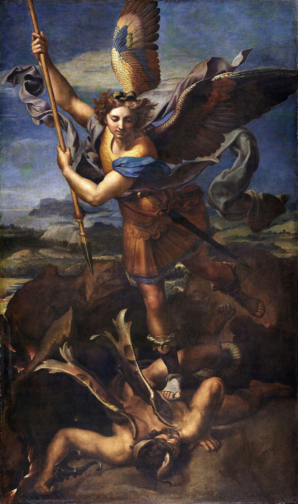 Michael is Hebrew for “who is like God?”, or “Quis ut Deus?” in Latin, which was the archangel’s zealous response to Satan’s prideful declaration “Non serviam”, or “I will not serve”. Michael’s name thus served as the battle cry of the heavenly hosts as they cast the fallen angels out of heaven. Michael himself, commander of the celestial army, was the primary guardian of the Israelites, and now of the Catholic Church. He is also the guardian angel of the Papacy, a patron of soldiers and policemen, and a great protector of the sick. Michael is often depicted holding a set of scales, for he accompanies each departing soul to their particular judgment, and will weigh the souls on Judgment Day. Today’s date marks the anniversary of the dedication of the Basilica of St. Michael on Mt. Gargano in Italy. Though all the angels have always been honored together today, Michael is their prince, and thus today’s feast is known as “Michaelmas”, a shortening of “Michael’s Mass”. In the traditional calendar Michael has a second feast on May 8th, and Gabriel, Raphael, and the Guardian Angels each have their own feast days. Throughout Christendom this day marks the changing of the season from summer to autumn, with many accompanying customs.