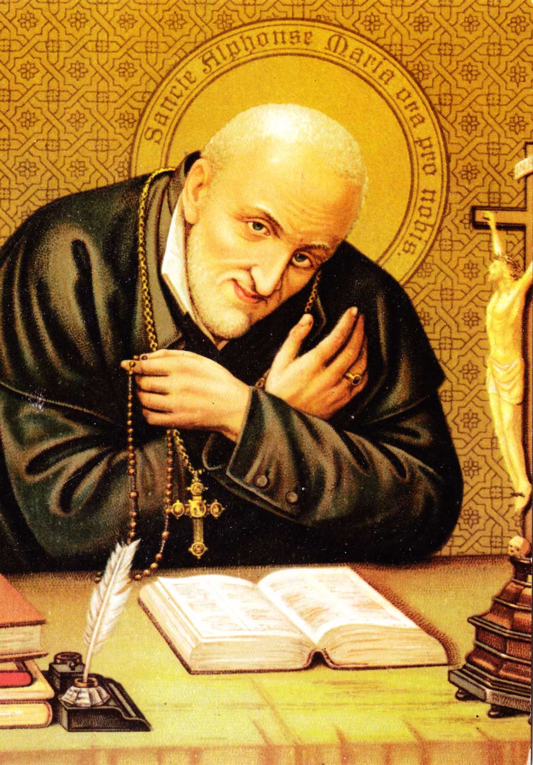 Alphonsus Maria de Liguori was born in the year of Our Lord 1696 to a pious noble Neapolitan family. By age sixteen, he had received his doctorate, and he became one of the greatest lawyers in Naples. Though a faithful Catholic, he was tempted by worldly pursuits and pleasures, though not to any grave sins. After a great humiliation in court sent him into a deep bout of depression, Alphonsus realized God’s will at work, and discerned a vocation. His reluctant parents finally approved, and Alphonsus was ordained at the age of thirty. He quickly became known for clear and simple preaching, and gentleness in the confessional—fruits of his own experience with scrupulosity. He founded the Congregation of the Most Holy Redeemer, or Redemptorists, and wrote not only great works of moral theology and Mariology, but also popular hymns and carols. He was made a bishop at nearly seventy years of age. Alphonsus suffered patiently from opposition to his good work and from decades of painful arthritis that left him permanently hunched, until his death at the age of ninety, on the feast of St. Peter in Chains, his memorial in the modern calendar. The Church has titled him “Prince of Moral Theologians”.