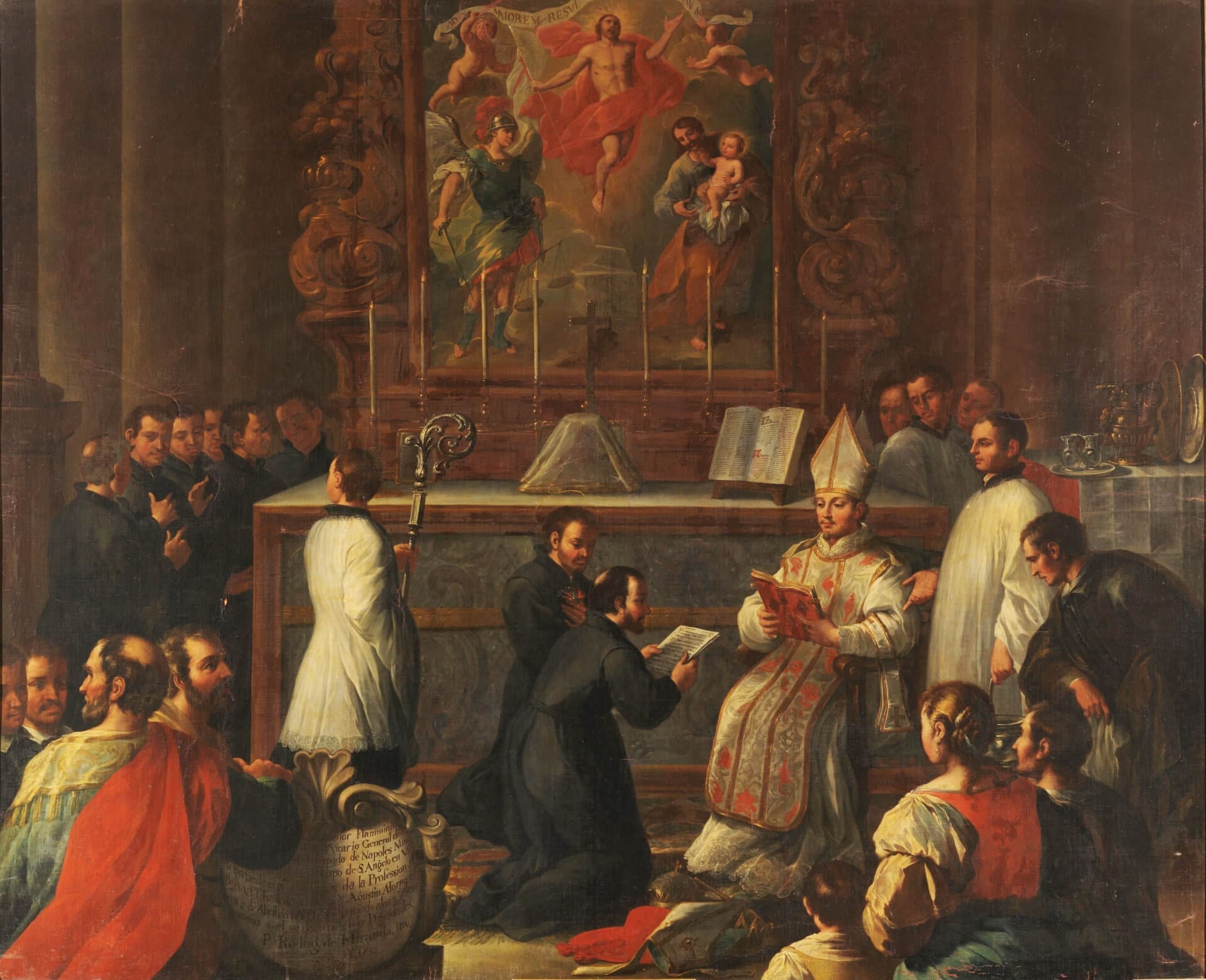 Francis was born with the name Ascanio in the year of Our Lord 1563, to the noble Caracciolo family in Villa Santa Maria, in the Kingdom of Naples. After he was healed from leprosy as a young man, he gave his life to God, became a priest in Naples, and joined an archconfraternity dedicated to helping condemned criminals convert and die in a state of grace. When a letter to another Caracciolo was delivered to Francis by mistake, the saint discerned God’s will at work and responded to the call contained within. He and the letter’s sender, Augustine Adorno, founded a new religious congregation, the Order of Clerics Regular Minor, often called the Caracciolini or the Adorno Fathers. This order is both contemplative and active, with a great devotion to Eucharistic Adoration, and members take a fourth religious vow to avoid seeking ecclesiastical dignities. Francis reluctantly became the general superior in 1593, True to his vow, he refused to ever be made a bishop. After years of devout mortifications, frequent Adoration, and hard work for the order, Francis died in the year of Our Lord 1608. He is honored as a patron of Naples, and of Italian cooks, thanks to his family’s long-standing connection to culinary instruction.