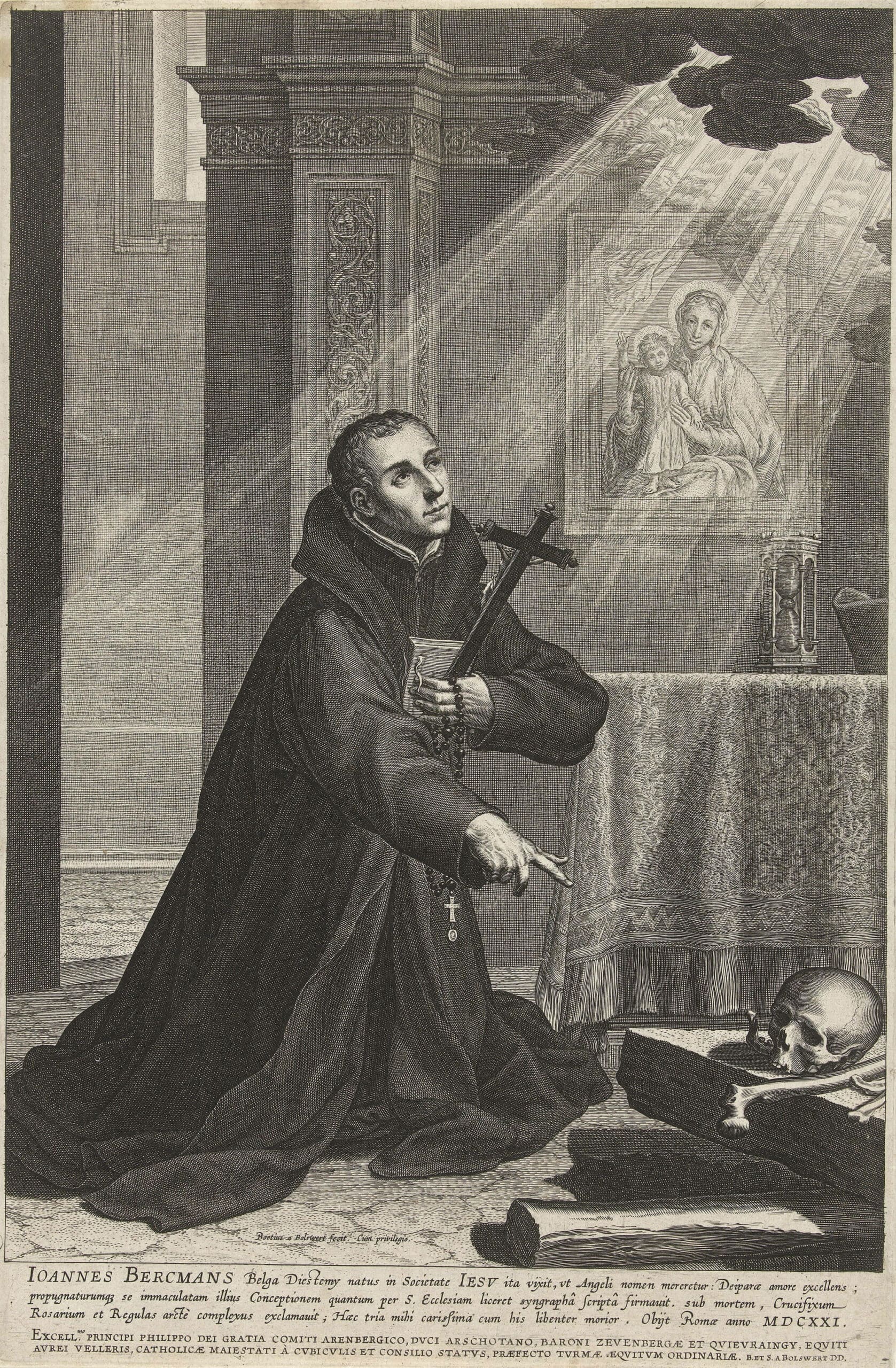 At Rome, St. John Berchmans, a scholastic of the Society of Jesus, illustrious for his innocence and for his fidelity to the rules of the religious life. He was canonized by Leo XIII.