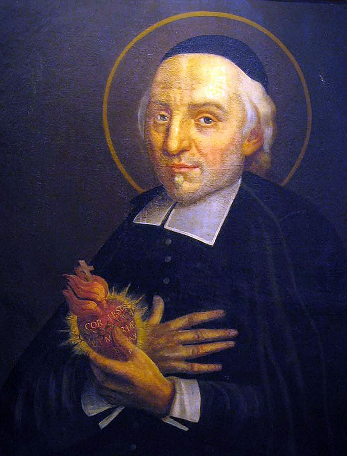 John was born in France in the year of Our Lord 1601. He took a vow of chastity at the age of fourteen, and studied under the Jesuits before becoming a priest of the French Oratorians. He displayed great courage in tending to victims of severe plague outbreaks. John then began to earn renown as a missionary throughout France. Contemporary saints like Vincent de Paul hailed John as one of the great preachers of the age. John also founded seminaries, an order of nuns dedicated to aiding reformed women, and the Congregation of Jesus and Mary, known as the Eudists. John is best known for promoting devotion to the Sacred Heart of Jesus and the Immaculate Heart of Mary. He was responsible for compiling the first Masses in honor of the two Hearts, and he erected many confraternities of the Sacred Heart throughout the French seminaries. Before John was even beatified, Pope Leo XIII declared him “Author of the Liturgical Worship of the Sacred Heart of Jesus and Holy Heart of Mary”. John died in France in the year of Our Lord 1680, after over fifty years of priestly service.